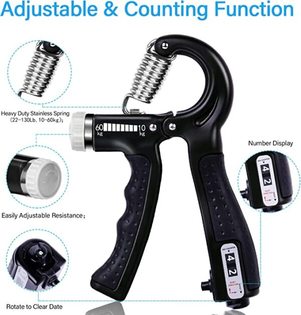 - 【Suitable for All Age Group】The hand grip strengthener is adjustable between 22-132lbs (10kg-60kg),suitable to adults, elderly ,adolescents, men and women, hand grip exerciser strengthener could exercise finger flexibility, palm grip, increase arm muscles and strength. It is ideal for musicians, fitness people and sports people to train.