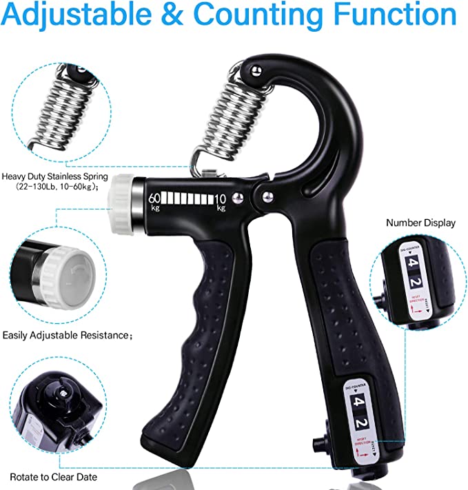 - 【Suitable for All Age Group】The hand grip strengthener is adjustable between 11-132lbs (5kg-60kg),suitable to adults, elderly ,adolescents, men and women, hand grip exerciser strengthener could exercise finger flexibility, palm grip, increase arm muscles and strength. It is ideal for musicians, fitness people and sports people to train.